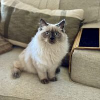 Sweet Crystal is ready for her new home. She is from my son's Cattery Cedar Hill Siberians. He has a FB page his phone number is 678-859-2625 located in Winder GA